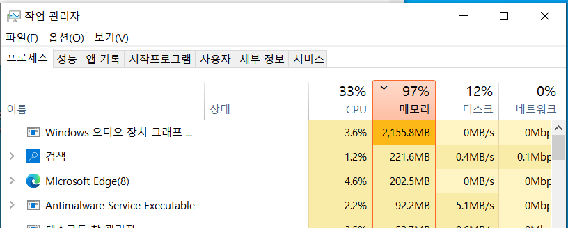 작업관리자 열어보니