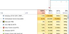 CPU는 윈도우 디펜더 때문이고